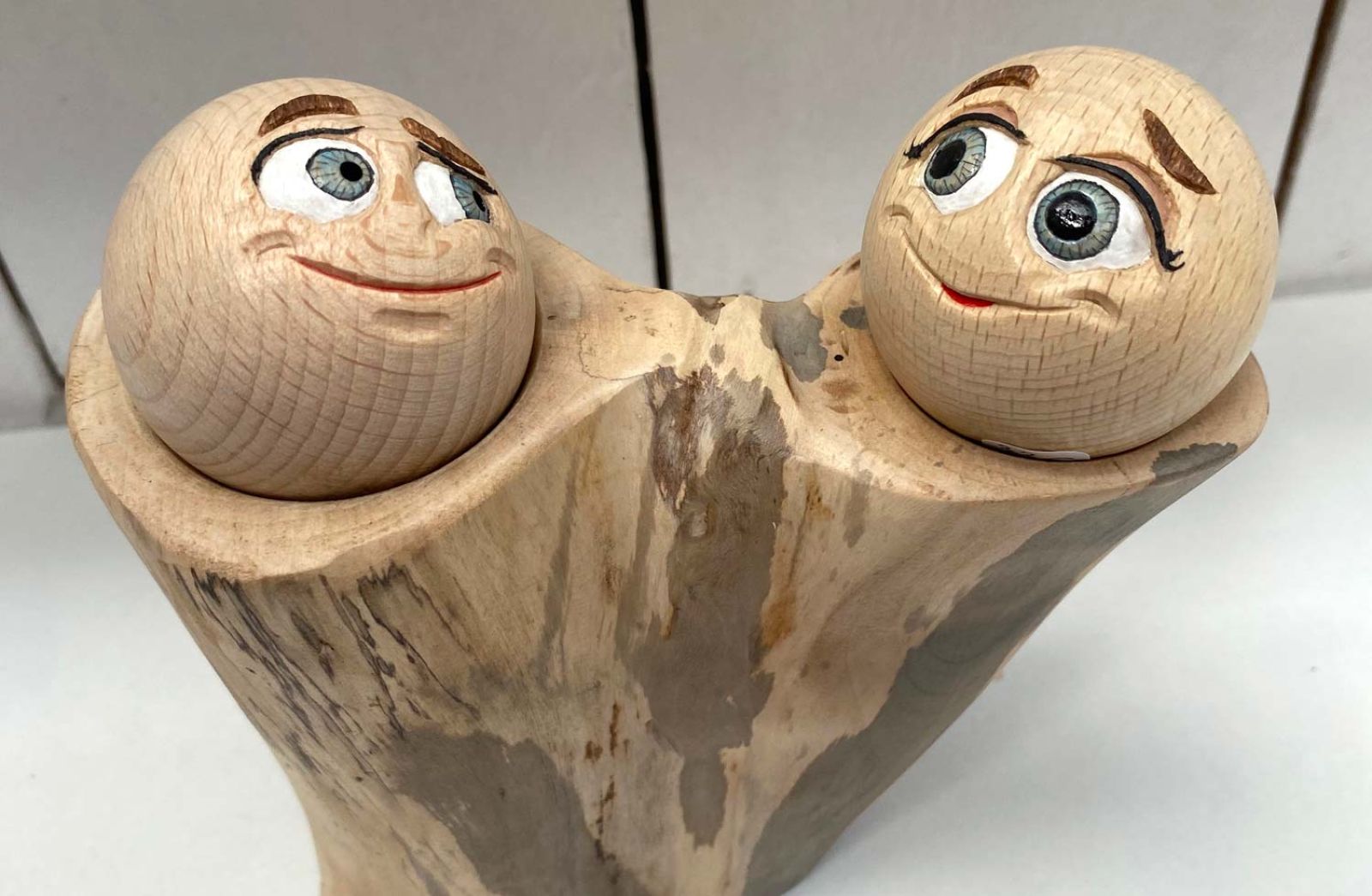 Bienvenue dans l’univers de Mak is back, sculpteur sur bois à la passion monomaniaque… ou presque ! Dans son atelier breton, il façonne avec minutie de petites boules de hêtre de 5 cm, sculptées et peintes à la main pour donner vie à de drôles de binettes aux expressions tendres, boudeuses, espiègles ou étonnées.